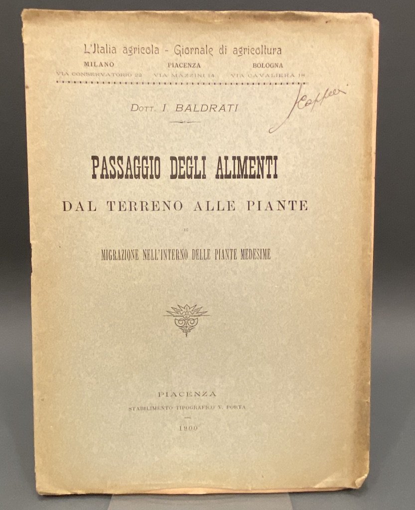Brossura (difetti) cm 27x18, pp 8 + 2 tavole a colori (Cromolitografia Francesco Casanova e figlio, Bologna). Pubblicazione (estratto?) del periodico L’Italia agricola.