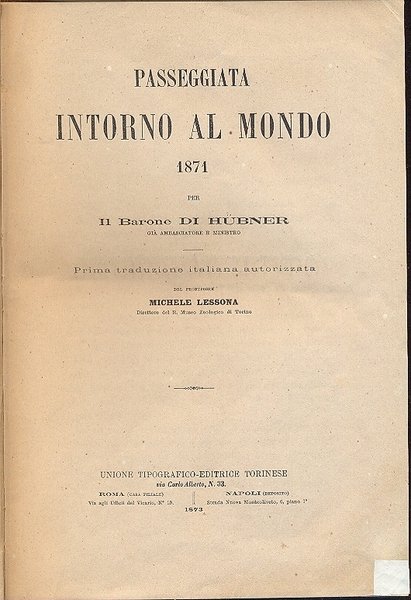 Passeggiata intorno al Mondo 1871. Prima traduzione italiana di Michele Lessona.