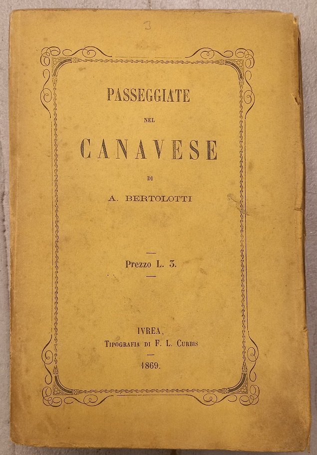 >In-8, pp. 463, (5), 43 contenenti correzioni, variazioni ed aggiunte al II tomo. Brochure editoriale a stampa. Terzo tomo facente parte della vasta e fondamentale opera sul Canavese, pubblicata tra il 1867 ed il 1878 e che raramente si riesce a reperire completa degli otto tomi. L'autore affronta ogni aspetto storico, corografico, naturale e folkloristico del Canavese. Il presente tomo contiene: Agliè, Cuceglio, Mercenasco, Strambino, vestigné, Borgomasino, Cosano, Settimo Rottaro, Caravino, Tina, Masino, Romano, Scarmagno, Vialfrè, Perosa. Ottimo stato.