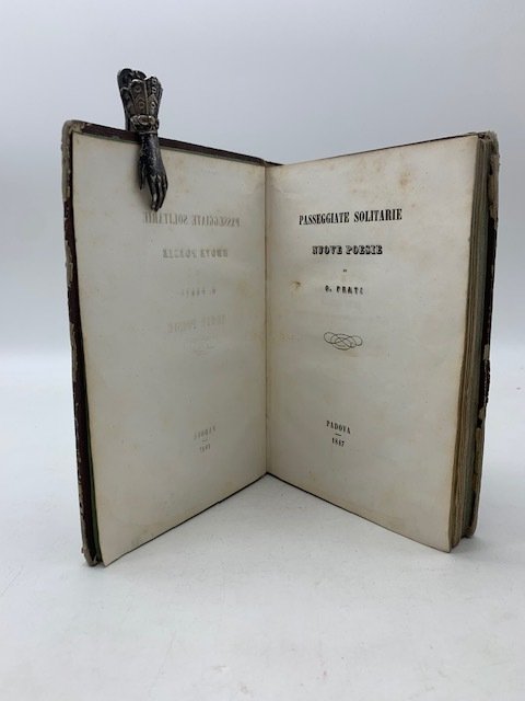 In 8, cm 13,5 x 20, pp. 334 + (4). Sporadiche ossidazioni. Mezza pelle con fregi oro al dorso. Pochi segni d'uso. Edizione originale con breve prefazione dell'autore e dedicatoria alle tre giovinette sepolte: Amalia Turroni, Amalia Buggiani, Malvina Gilli. Poeta da i più rappresentativi della seconda generazione degli autori romantici in Italia. Sostenitore della dinastia sabauda nel 1848 fu espulso da Padova. In fine si stabilì a Torino, seguendo la corte durante il trasferimento a Firenze e a Roma dove ebbe la direzione dell'Istituto superiore del magistero