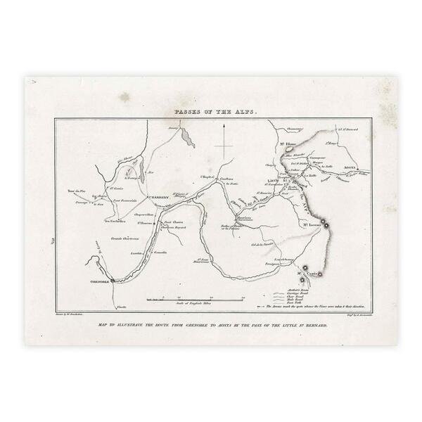 Passes of the Alps - Map to illustrate the route from Grenoble to Aosta by the pass of the little St. Bernard - Folio 27x21 cm