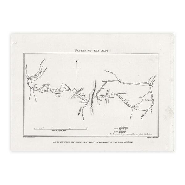 Passes of the Alps - map to illustrate the route from Turin to Grenoble by the Monte Genevre - Folio 27,5x21 cm
