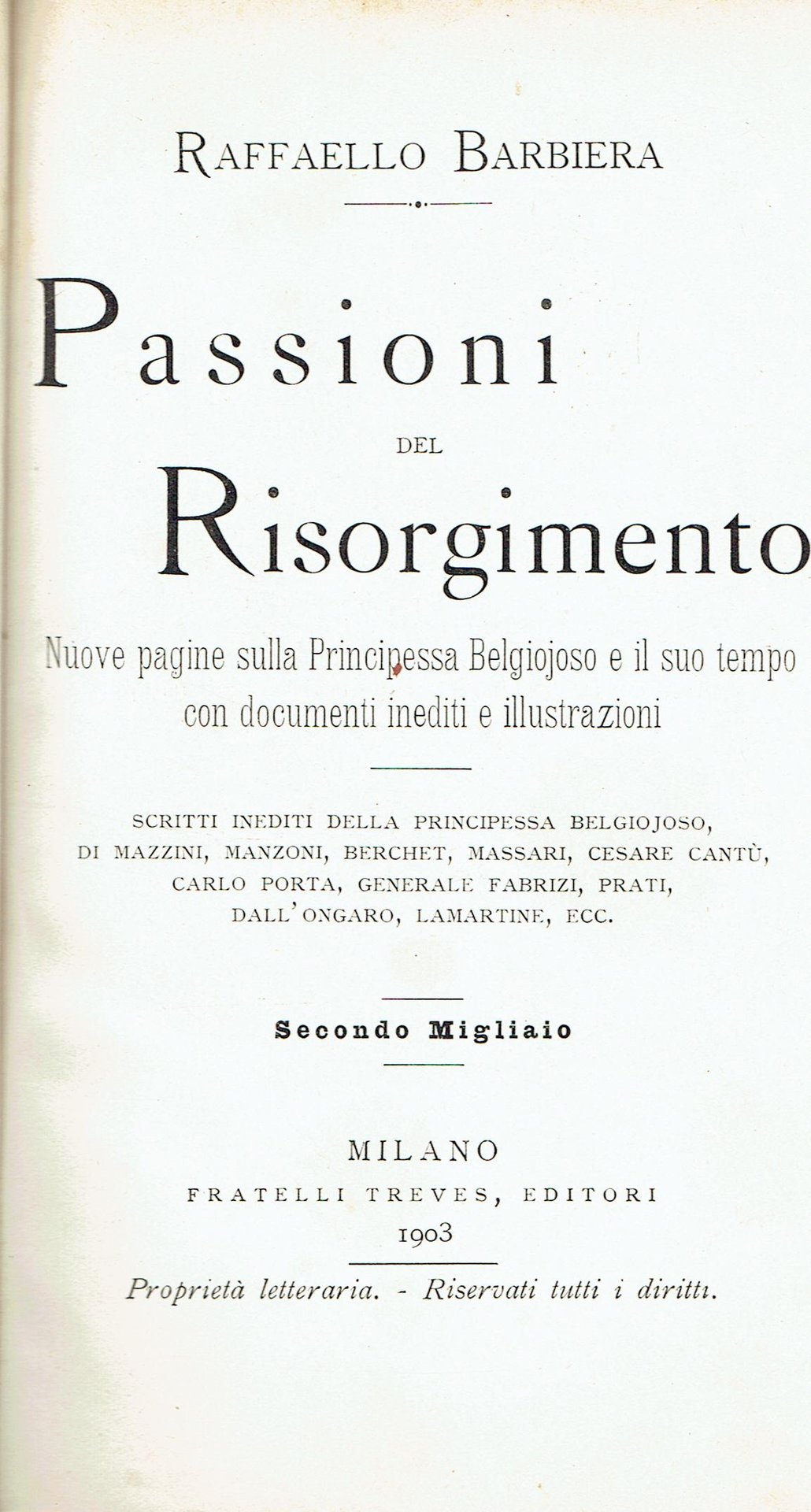 Passioni del Risorgimento : nuove pagine sulla principessa Belgiojoso e il suo tempo con documenti inediti e illustrazioni