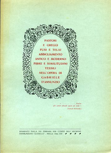 Pastori e greggi, fusi e telai, abbigliamento antico e moderno, fibre e similitudini tessili nell'opera di Gabriele d'Annunzio. Note
