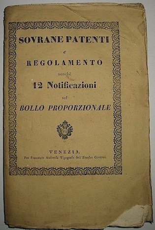 Patente (Sovrana) ed annesso regolamento pel nuovo bollo e tasse non che altra sovrana patente sul bollo carte da gioco, calendarii, avvisi e gazzette e relative notificazioni