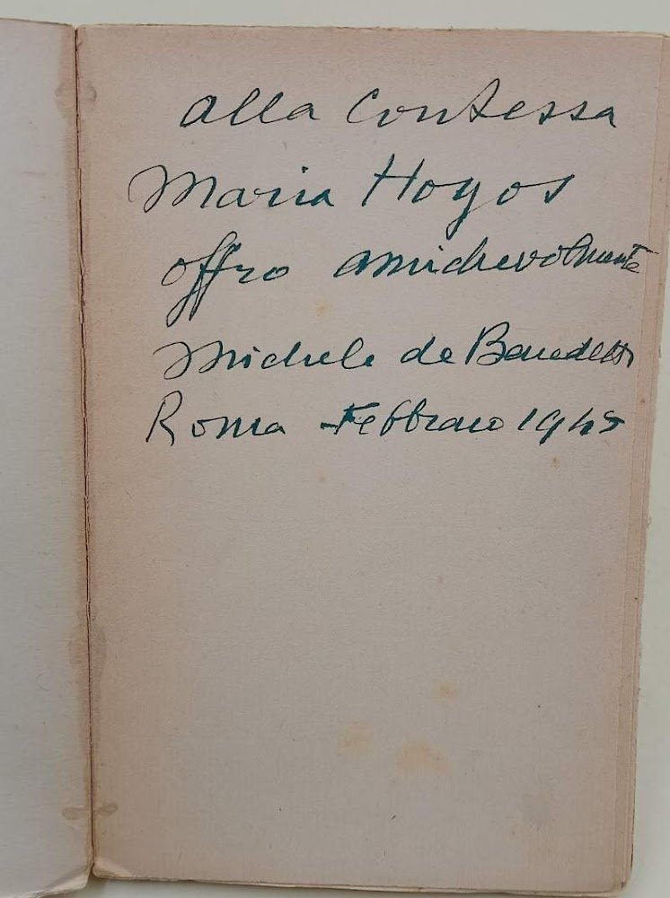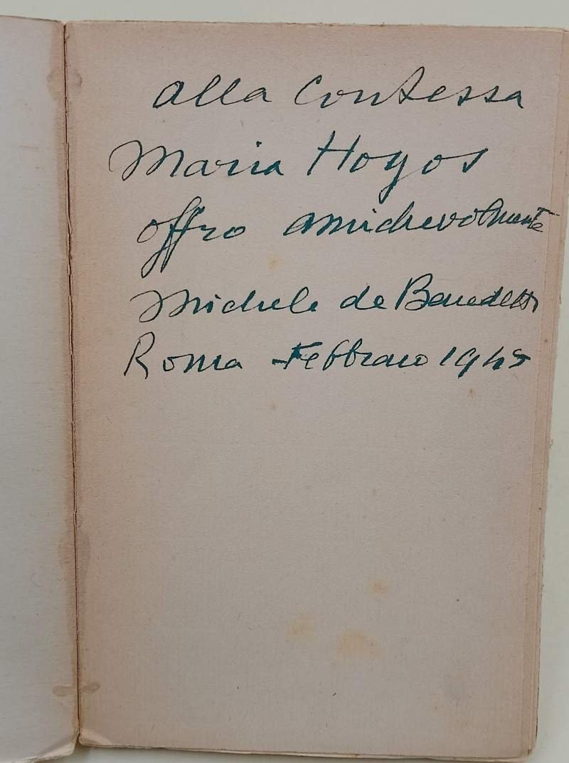 In 8', br. ed., pp. 107, dedica autografa dell'A. in prima bianca datata 1949, privo di data di edizione. lievi pieghe, bruniture e fioriture alla cop., interno in buono stato, ordinari segni del tempo.(foto) ***Due to bureaucratic reasons, books dated over 70 years old cannot be immediately exported, please contact us before placing the order.***