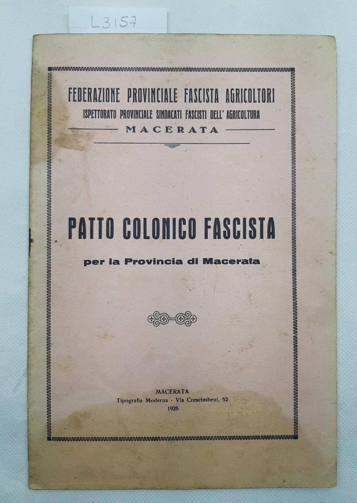 Patto colonico fascista per la provincia di Macerata agricoltori 1926 -3157