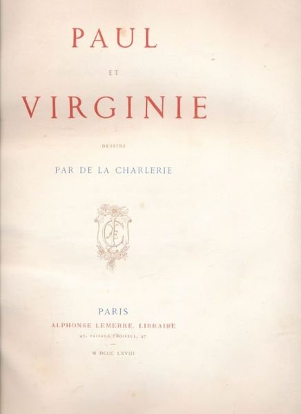 Paris, Alphonse Lemerre, 1868 1868 Paris, Alphonse Lemerre, 1868. In-folio, reliure éditeur pleine percaline rouge, titre doré en dos et au 1er plat, gardes de papier marbré. XXVII + 334 pages, portrait en frontispice sous serpente. Illustrations par H. de L Charlerie gravées par Ligny, Meyer-Heine, Sargent. Chaque page de texte dans un encadrement différent parme. Petits frottements et traces à la percaline sans grande gravité, corps de l'ouvrage en bel état sans rousseurs. Bon exemplaire.