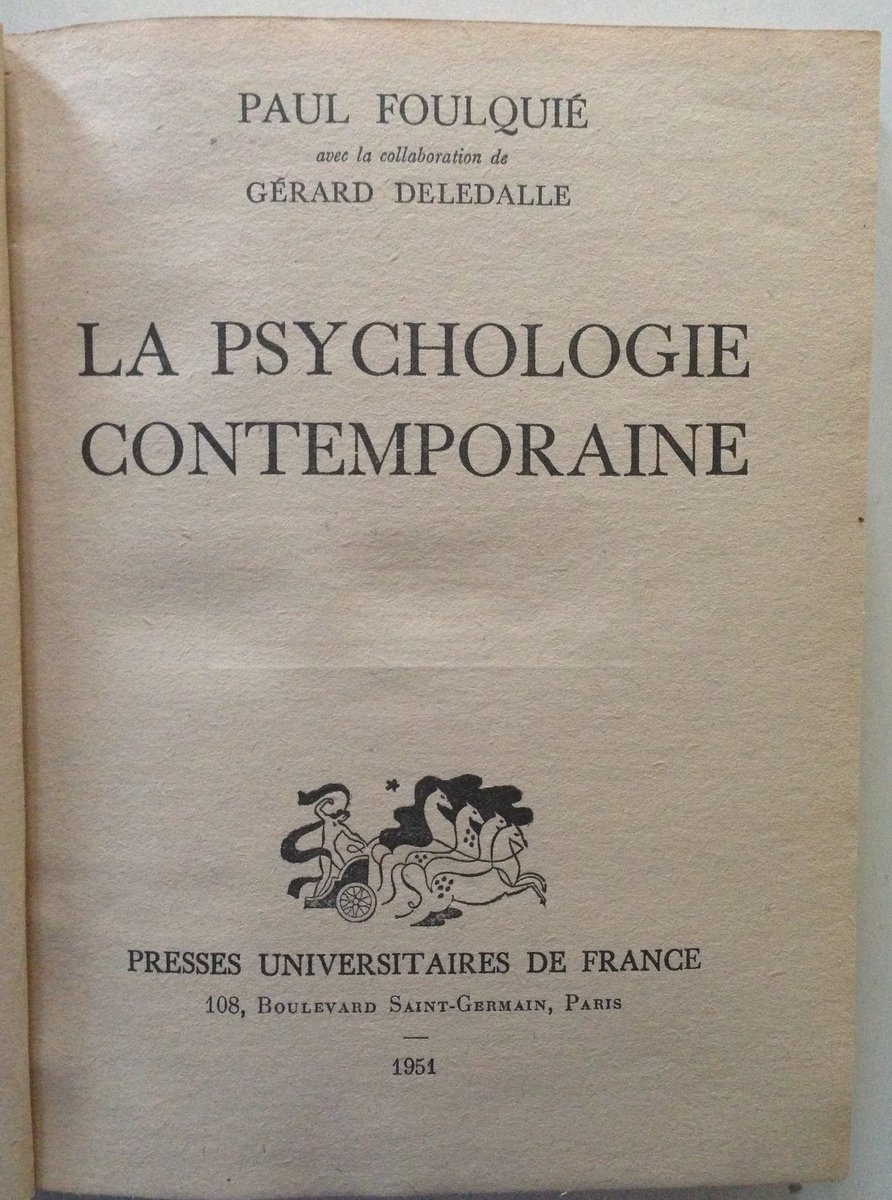 Paul Foulquie La Psychologie Contemporaine Presses Universitaires de France 1951