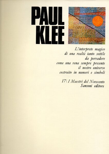 D'anno in anno, di stagione in stagione, Hans L. Jaffé segue e indaga in questo studio lo svolgersi della vicenda di Paul Klee, come dire del pittore magari più magico della prima metà del secolo: analista di una realtà tanto sottile da essere difficilmente afferrabile ma anche da pervadere la vita nostra e del mondo come una vena universalmente presente. Poesia di numeri e poesia di simboli, sostanza di una sostanza, realtà di una realtà: l'arte di Klee sfugge a una classificazione categorica nell'astrazione, nell'espressionismo astratto, nel surrealismo, fino nel non-figurativo; è immediata ed elaboratissima, trema di un infinito amore per la vita e per le cose. Dinanzi a un diagramma di pensieri e di immagini tanto quintessen- ziato, l'Autore cava dalla cronaca la storia, e il suo giudizio storico, in un lavoro largamente documentato anche dall'ampia serie di riproduzioni e dai regesti bio-bibliografici che lo concludono.