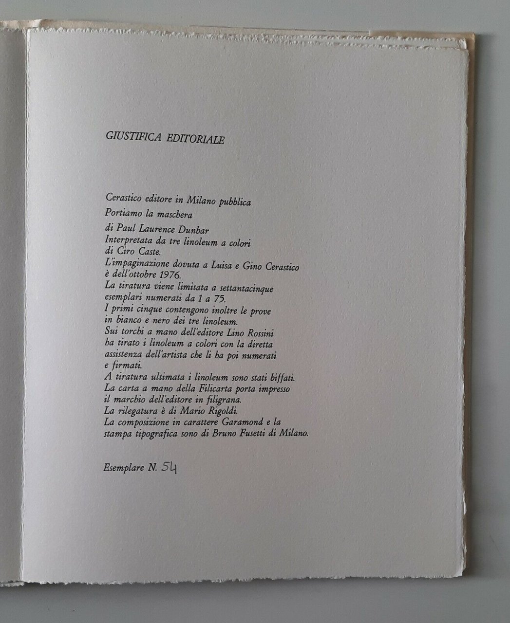 PAUL LAURENCE DUNBAR PORTIAMO LA MASCHERA LINOLEUM DI CIRO CASTE CERASTICO 1976