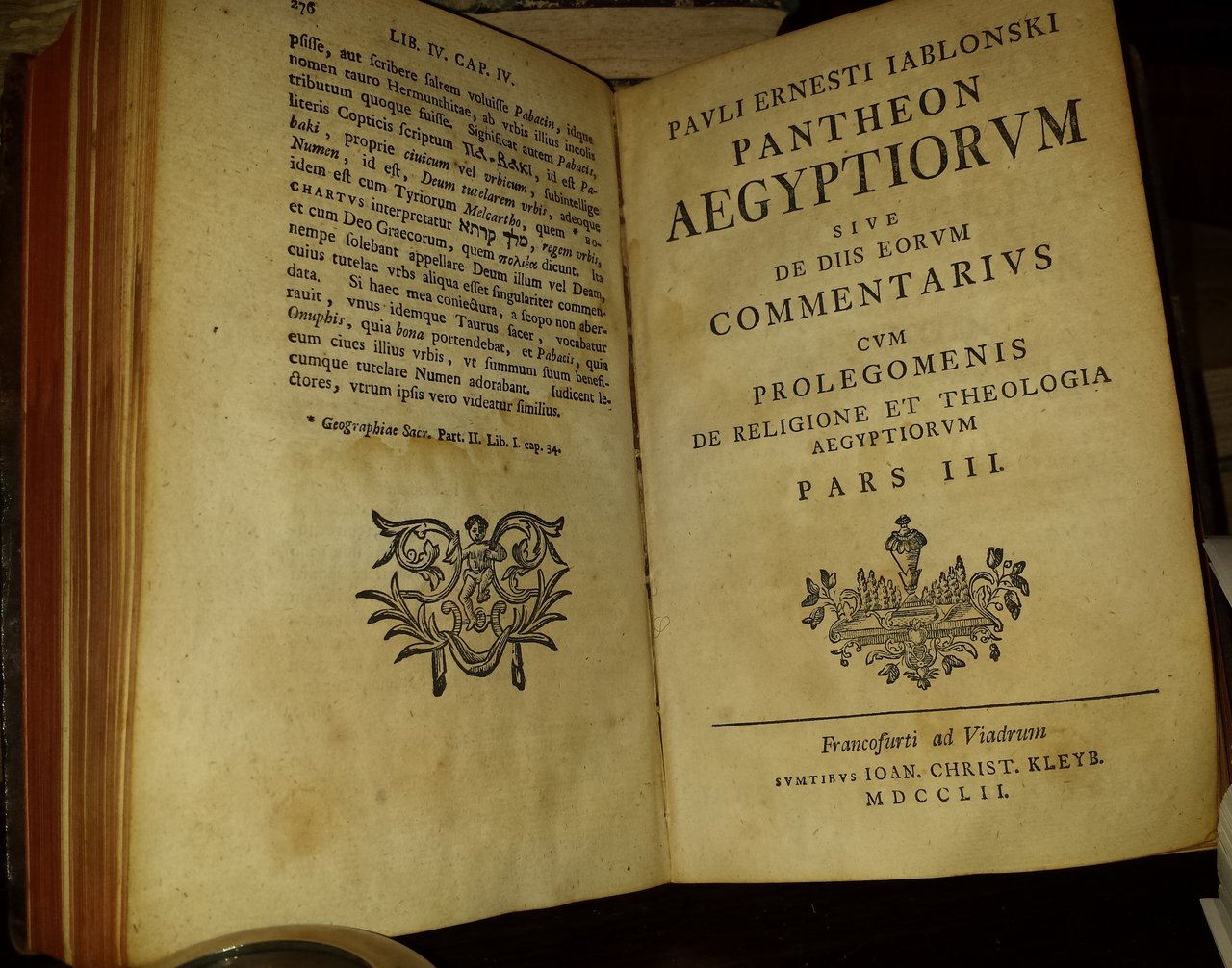 Pauli Ernesti Iablonski Doctoris theologi in academia francofurtana senioris et societatis scientiarum regiae berolinensis membri, Pantheon Aegyptiorum sive De diis eorum commentarius cum prolegomenis de religione et theologia Aegyptiorum. Pars I-III
