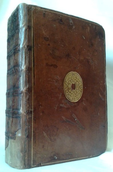 Volume in folio legato in pelle, piatti inquadrati da filetto in oro, fleuron centrale impresso in oro, titolo al tassello al dorso (professionalmente restaurato), sguardie, frontespizio del primo tomo (scritta a pennino), tre carte non numerate, 236 carte numerate, 18 carte col panegirico di Benedetto Varchi e gli indici, 349 carte numerate comprensive del frontespizio del secondo tomo, bianca, 17 carte d'indici. I difetti: l'angolo esterno inferiore presenta tracce d'umidit che hanno in qualche foglio reso fragile la carta, tracce di tarlo insistenti sempre nel margine inferiore quasi sempre all'angolo esterno, ben lontane dal testo, traccia (molto chiara) di gora nel secondo tomo, leggermente pi marcata in alcune carte. Testo completo e collazionato, stampato su carta forte e nerbata. Il Giovio dedic a questo capodopera 30 anni di lavoro. Esso riporta gli avvenimenti accaduti negli gli anni dal 1494 al 1547 ed occupa un posto notevole nella storiografia del Rinascimento. Copia in ancor buone condizioni, di grandissima qualit, terza eccellente edizione. Margini ampi, bell'impaginazione. Peccato i difetti (pi d'immagine che sostanziali). Importante e raro