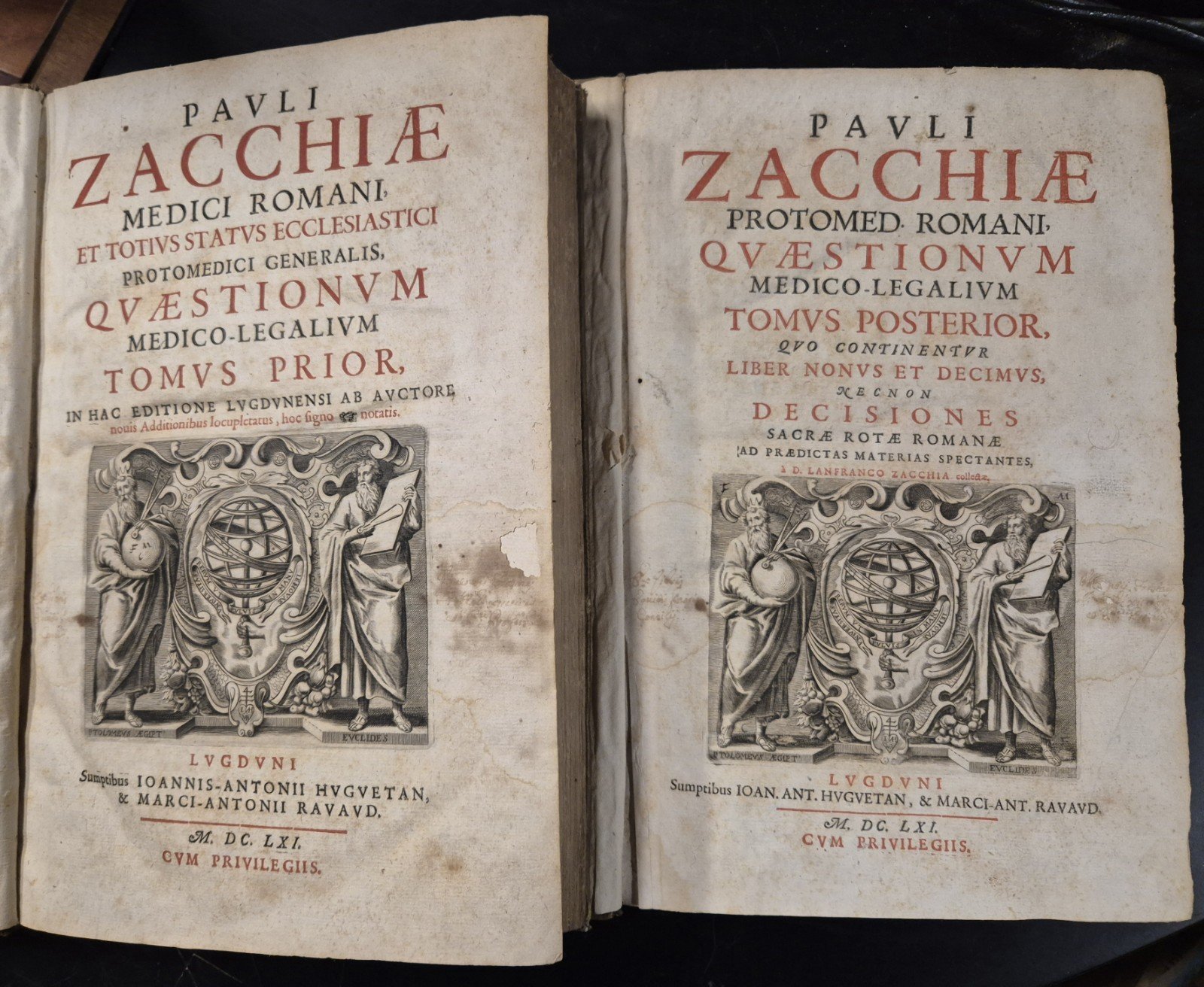 PAULI ZACCHIAE QUAESTIONUM MEDICO LEGALIUM 2 volumi 1661 Huguetan Libro antico