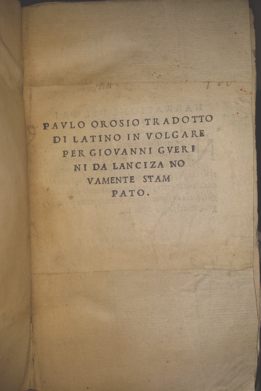 Paulo Orosio tradotto di latino in volgare per Giovanni Guerini da Lanciza novamente stampato