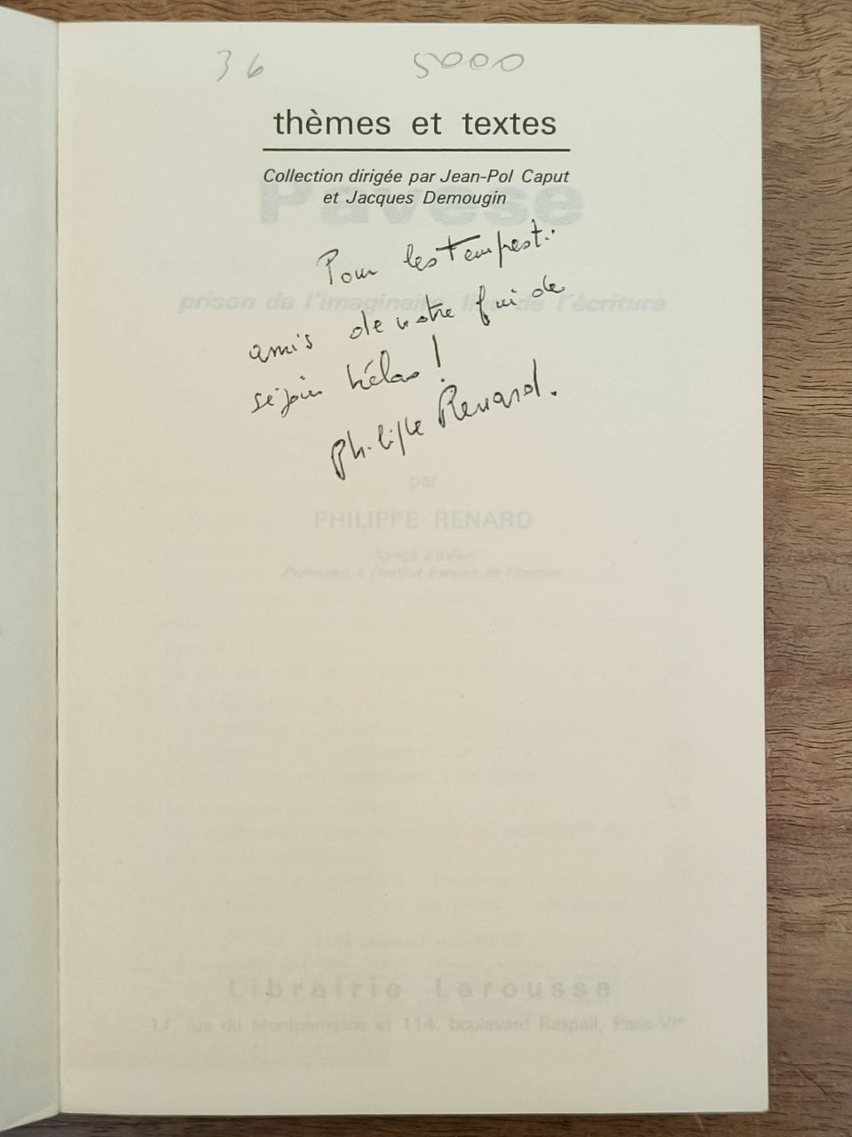 Pavese. Prison de l'imaginaire lieu de l'écriture, Parigi, Larousse, 1972. Cm 16,8. Pp. 239. Brossura editoriale. Dorso lievemente sciupato. Dedica autografa dell'autore.
