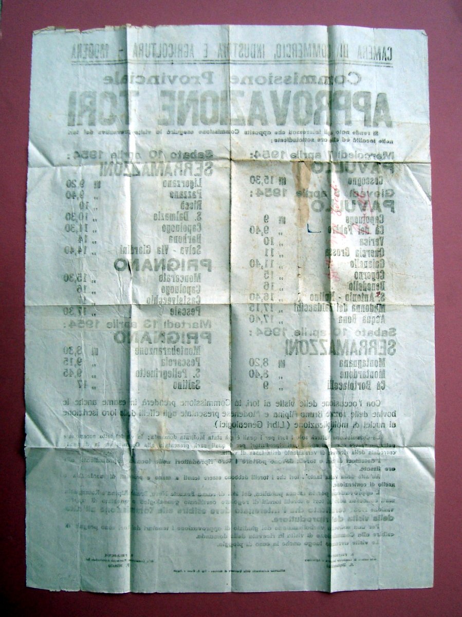 Pavullo Serramazzoni Manifesto Approvazione Tori CCIA Modena 1954
