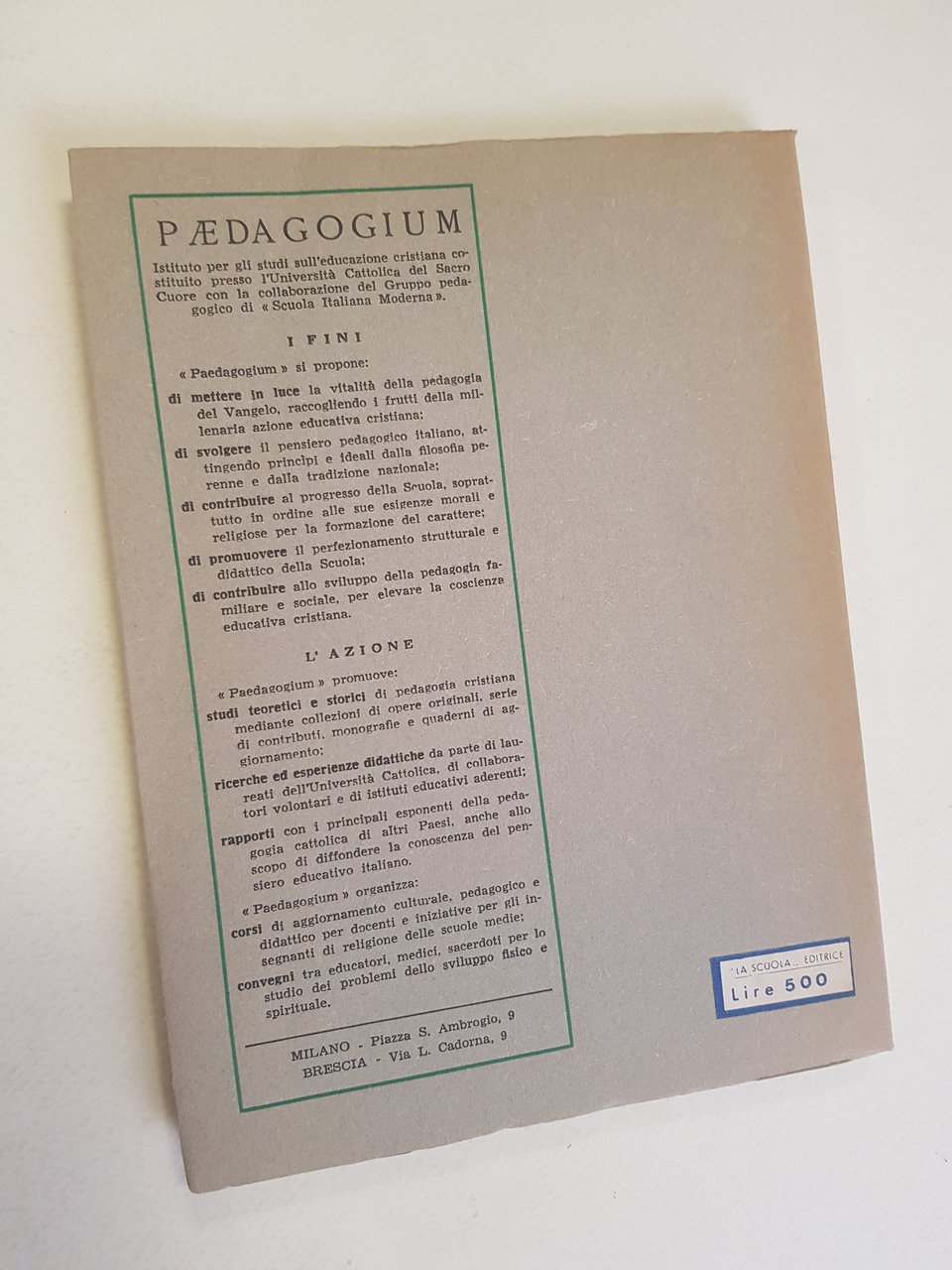 Collana: Contributi del "Paedagogium". Saggi di Pedagogia Didattica e di Storia dell'Educazione.<BR>Seconda edizione.<BR>In 8°; pp. 174; brossura editoriale con alette; cucito.<BR>CONDIZIONI MOLTO BUONE.