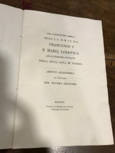 PEL FAUSTISSIMO ARRIVO DELLE L.L.M.M. FRANCESCO I E MARIA LODOVICA AUGUSTISSIMI SOVRANI NELLA CITTA’ DI VICENZA . AZIONE ALLEGORICADA ESEGUIRSI NEL TEATRO ERETENIO