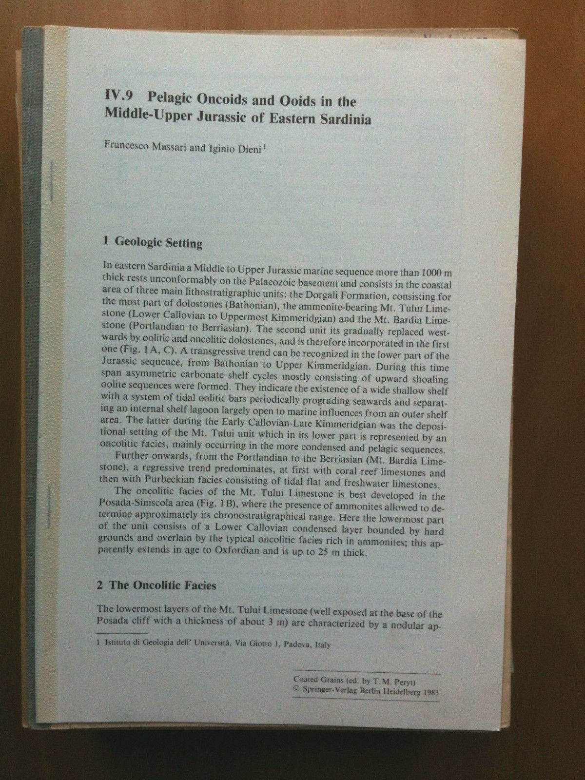 PELAGIC ONCOIDS AND OOIDS IN THE MIDDLE-UPPER JURASSIC OF EASTERN SARDINIAIstituto di Geologia dell'Università di PadovaFrancesco Massari e Iginio Dieni 10 pages Format 16,5x24 cm excellent condition except for small tear last page (19 g)E3436
