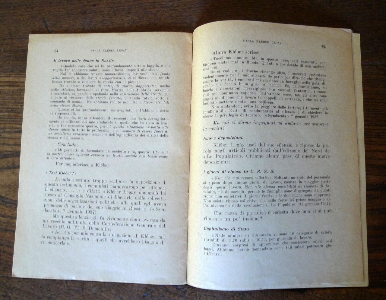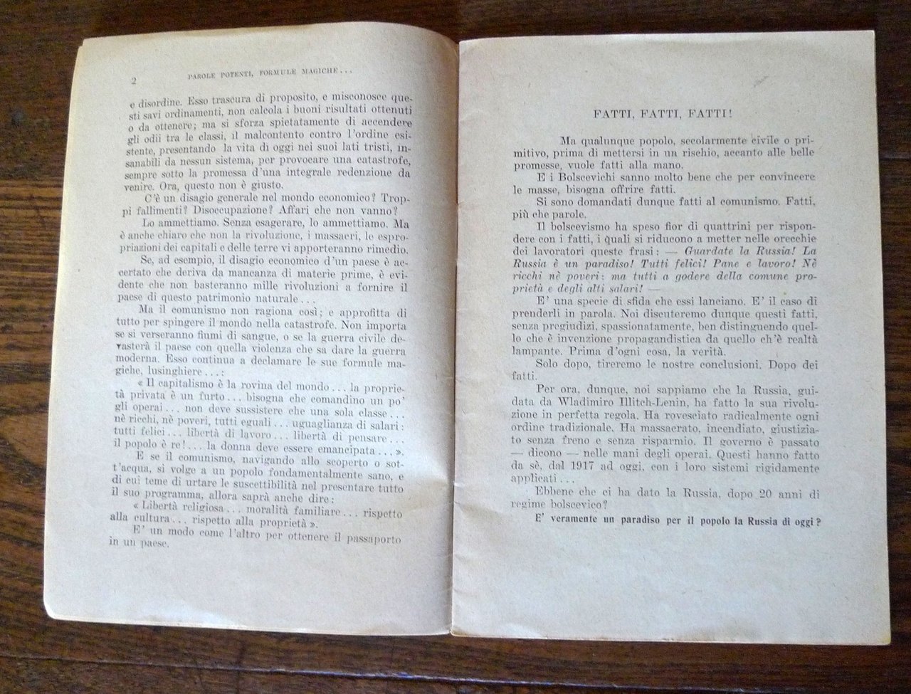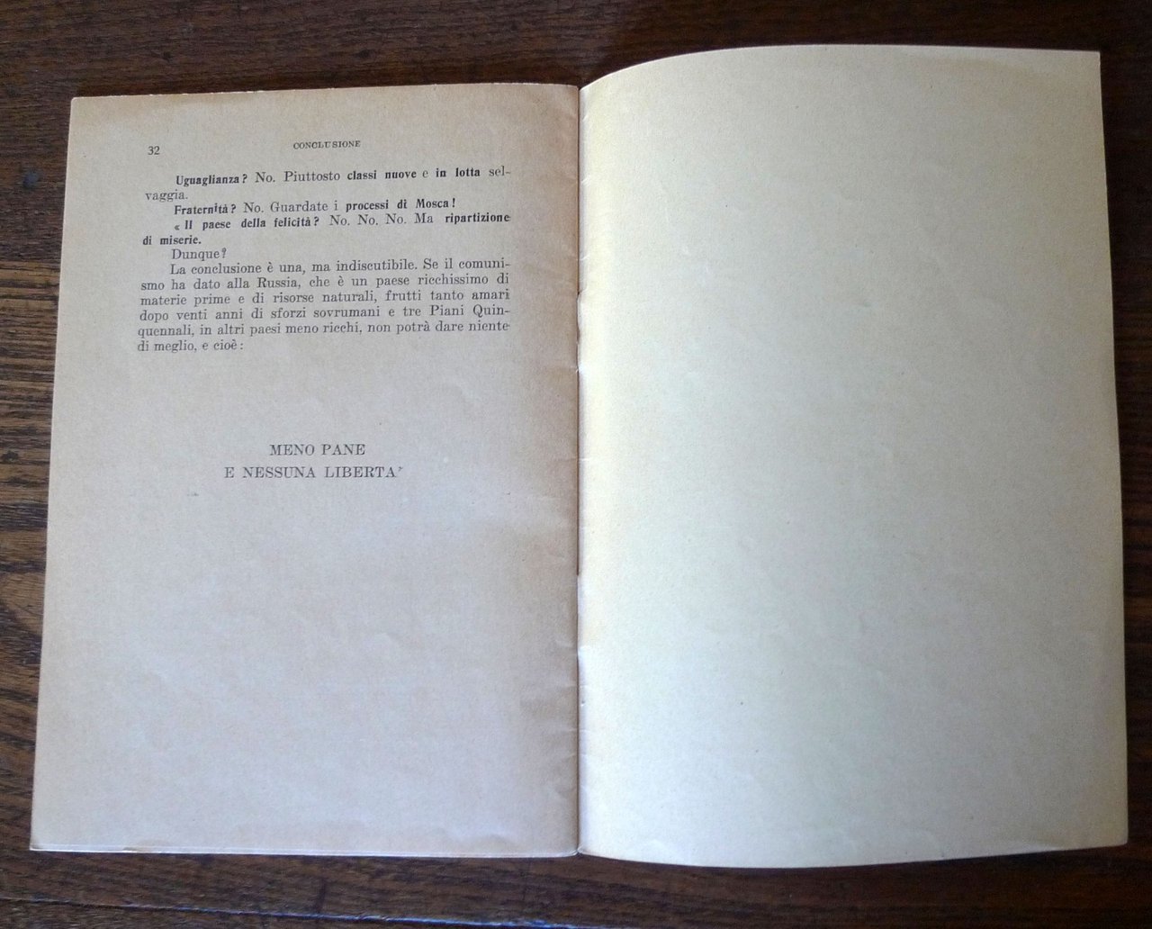 F. Pellegrino,OPERAI NELLA RUSSIA.Edizione S.D.A., Roma, senza data (1937?)brossura, rilegatura con punto metallico,18x12,5 cm., pp.32,DOCUMENTI ROSSI,peso: g.300cod.6413CONDIZIONI DELL'OPUSCOLO: molto buone,pagine ingiallite