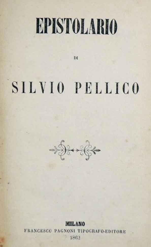 Silvio Pellico, Epistolario, Francesco Pagnoni Tipografo-Editore, Milano 1862, pp. 182, cm 23, legatura in mezza tela con piatti in carta marmorizzata, titoli al dorso e tagli spruzzati. Tracce d’uso alla legatura, con abrasioni ai tagli dei piatti e alle cuffie, minime fioriture e bruniture a prime e ultime carte, per il resto volume pulito, ben conservato e ben legato.