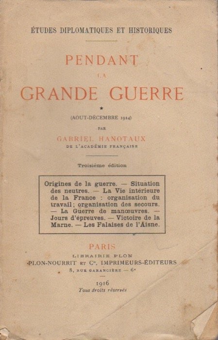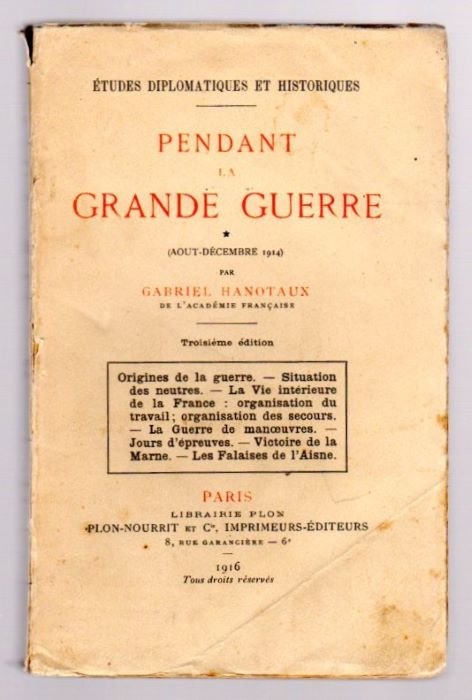 Pendant la grande guerre: aout-décembre 1914.