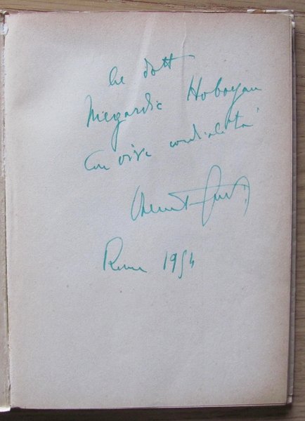 Dedica autografa dell'autore all'occhietto. 1 tavola monocromatica f.t. Tip. U. Pinto - Roma, 1950. Brossura editoriale con sovraccoperta acetata originale.13,5x19; pp.85. Raro, Ottimo esemplare. , Ottimo (Fine)