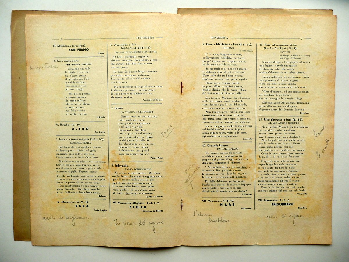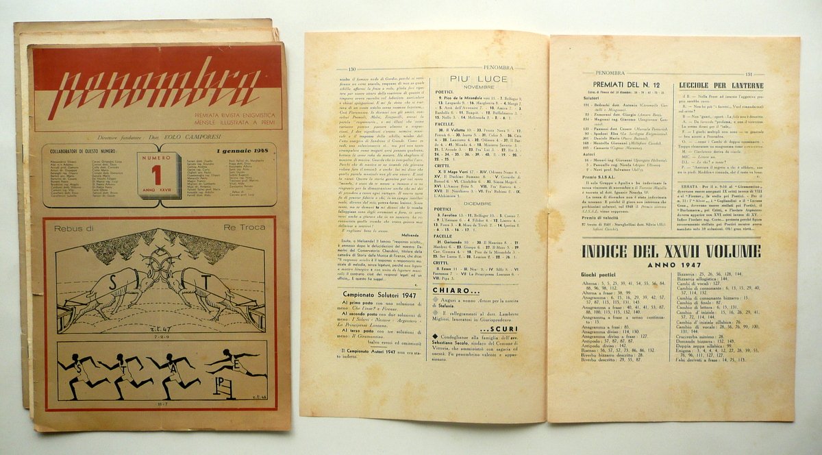 Penombra Rivista Enigmistica Mensile Anno XXVIII N. 1 ForlÏ 1/1/1948 Enimmistica
