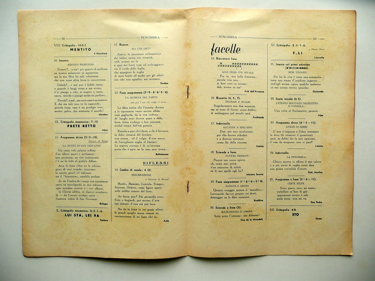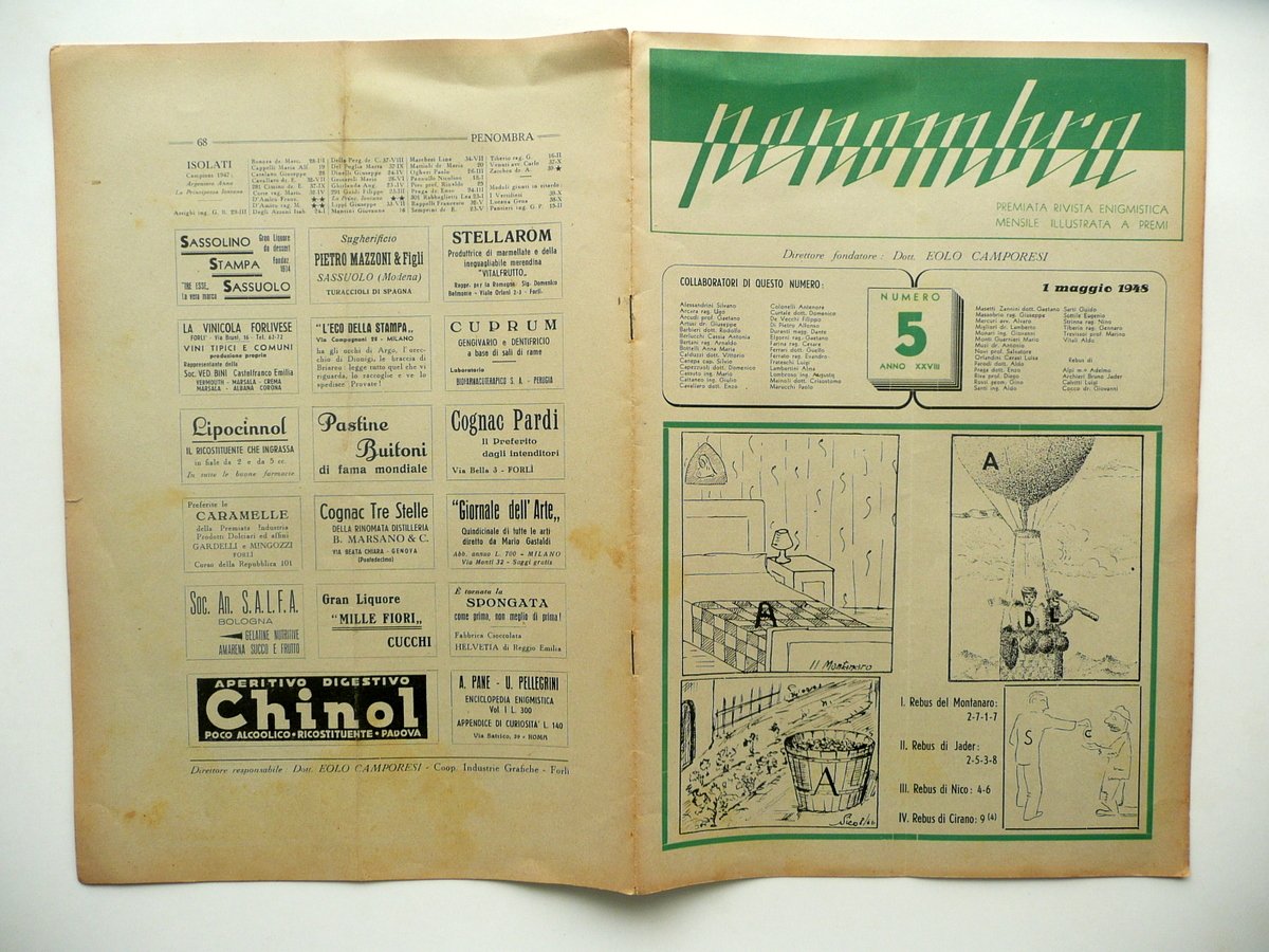Penombra Rivista Enigmistica Mensile Anno XXVIII N. 5 ForlÏ 1/5/1948 Enimmistica