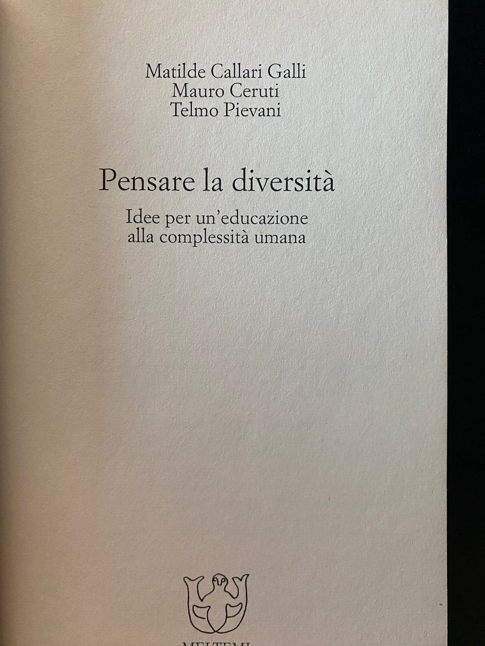 Pensare la diversità, Galli - Ceruti - Pievani, Meltemi, 2000