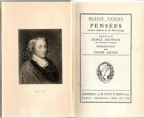 in 16°, pp. LI, 405, leg. edit. p/tela azzurra con fregi in blu e tit. in oro, ritratto di Pascal all'antip. Collection Gallia. Prefaz. di Emile Boutroux, introduz. di Victor Giraud. Buono. 108-39