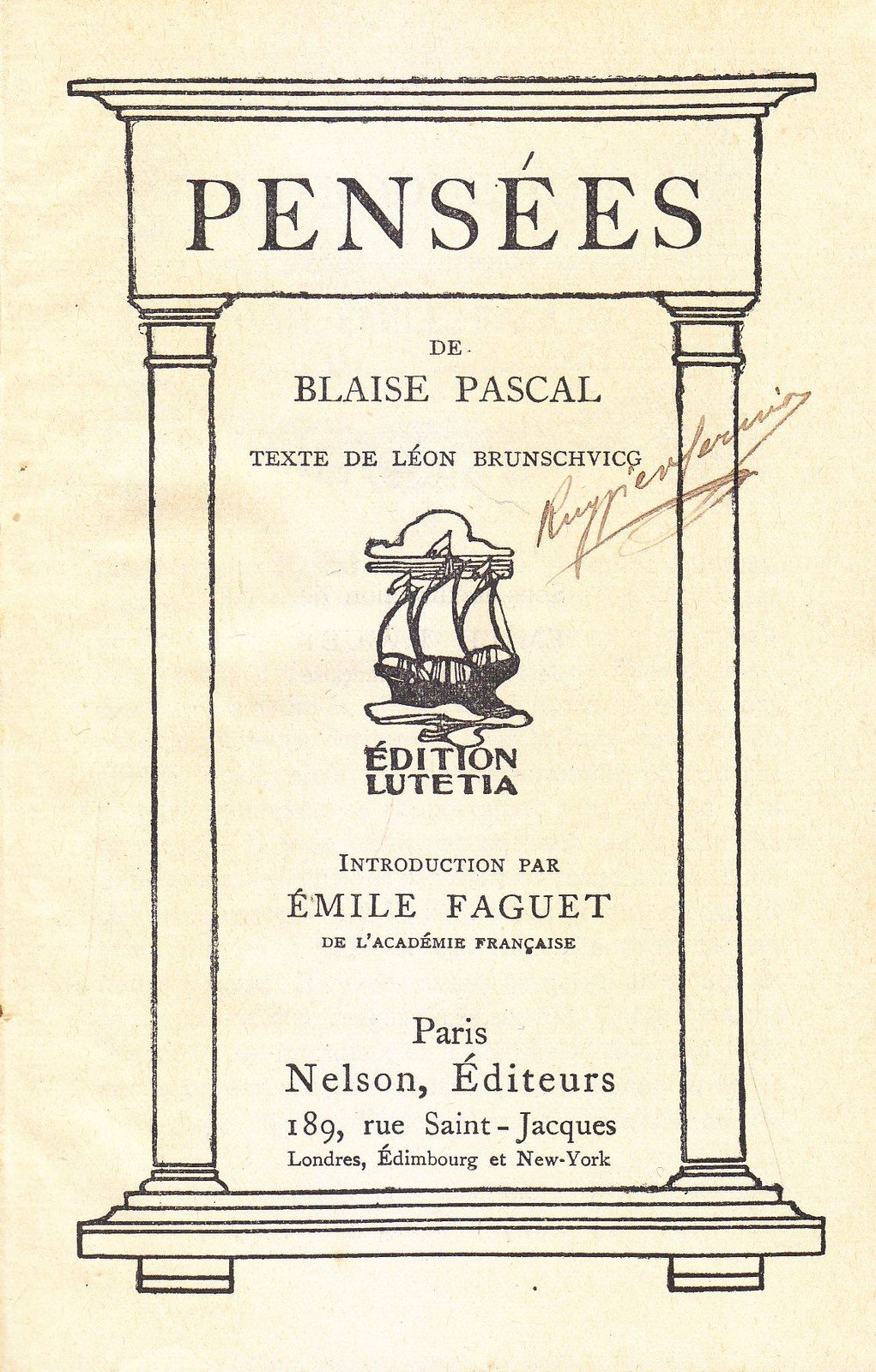 Pensees de Blaise Pascal Nelson Editeurs senza data (dopo il 1905)
