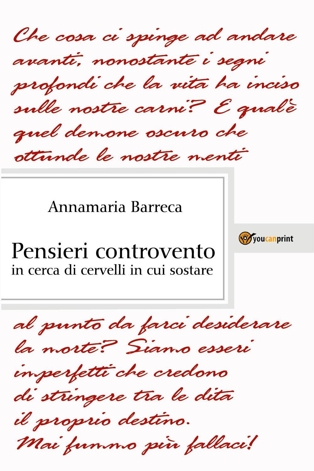 "Pensieri controvento in cerca di cervelli in cui sostare" rappresenta una raccolta di aforismi e riflessioni dettate dall'osservazione del periodo in cui si vive. La pandemia, il ritiro forzato, le guerre e le ingiustizie sociali sono stati l'humus per queste elaborazioni. Meditare su fatti e misfatti è un ottimo esercizio. Osservare la vita e la morte nella loro realtà è d'obbligo. Considerare la funzione della parola e della poesia è fondamentale per una buona comunicazione. Così di seguito Annamaria Barreca analizza il proprio rapporto con la Storia, la religione, il mondo che la circonda, per finire col leggere dentro se stessa. Una lettura accattivante, senza orpelli, una pausa in un mondo che ha velocizzato il tempo e scapito della spiritualità.