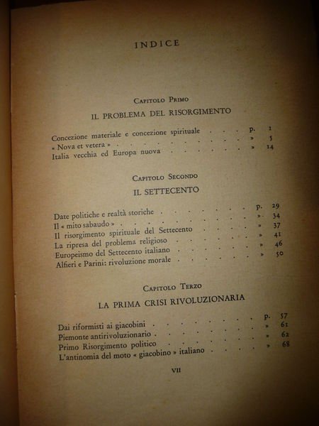DESCRIZIONE: Einuadi Ed. Torino 1943 ?I^ Ed., br. ed. pp. 228 in 8°. Contiene: Il problema del Risorgimento (Concezione materiale e spirituale; Italia vecchia e Europa nuova); Il 700 (Mito sabaudo; Risorgimento spirituale del 700; Ripresa del problema religioso; Europeismo del 700 italiano;.); Prima crisi rivoluzionaria (Dai riformisti ai giacobini; Piemonte antirivoluzionario; L'anfibio "regno d'Italia"; Equivoco del napoleonismo; Restarazione austriaca;.); Elaborazione decisiva (Liberalismo carbonaro; Riformismo lombardo e il Conciliatore; Moti 1820 - 21. 1831 - 33; Mazzinianesimo. liberalismo moderato e radicale;.); Rivoluzione nazionale (Fisionomia del '48; Trionfo del neo - guelfismo; Dal riformismo alla rivoluzione; Sconfitta piemontese e fallimento del federalismo; Diagnosi del '48; .); Unificazione (Il nuovo Piemonte; Politica del connubio; Funzione capitale del partito d'azione; Mazzini e Cavour; Garibaldi; Politica europea dopo il 48. dai popoli ai governi; Analisi dell'unificazione plebiscitaria; Destra e Sinistra; La questione romana;.); Crisi del post - risorgimento (Mussolinismo e nazionalismo; La catastrofe;.). Indice completo in foto. CONDIZIONI: Discrete vol. che presenta macchia in cop. interni ottimi ma naturalmente ingialliti. PESO / WEIGHT: 341 gr. without package