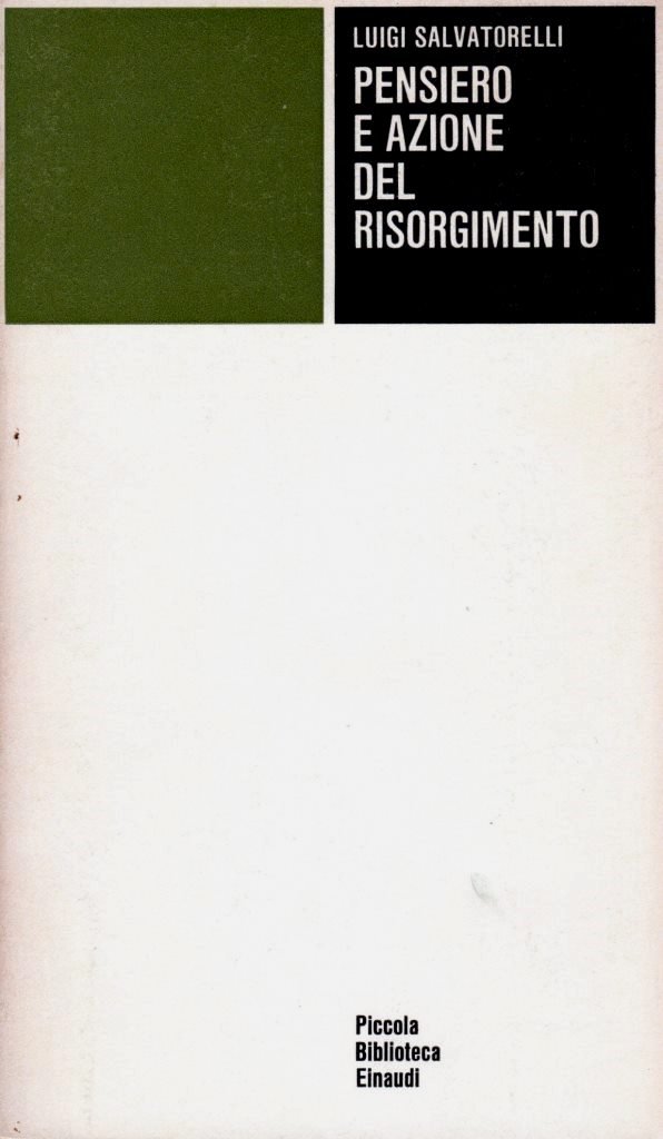 Pensiero e azione del Risorgimento, ottava edizione giugno 1977, pp. 198, formato 10,5 x 19.<BR><BR>Copertina morbida di colore bianco e verde con titoli in bianco al piatto anteriore e in nero sul dorso.<BR> <BR>Ottime condizioni.