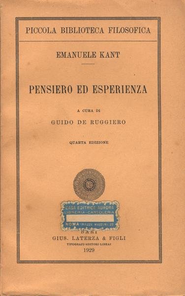 LATERZA PBF, 1929. In 8° (20,5 cm) 116 pp. A cura di Guido de Ruggiero. OTTIMO stato in copertina etichetta libreria-cartoleria Aurora in Roma