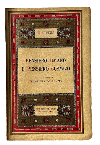 In 8°; VII, (1), 96, (8) pp. Brossura editoriale a colori. Esemplare in ottime condizioni di conservazione ed ancora a fogli chiusi. Prima edizione italiana, assai rara da reperirsi in queste magnifiche condizioni di conservazione, di questo importante scritto del celebre esoterista e teosofo austriaco nato in Croazia, Rudolf Joseph Lorenz Steiner (Kraljevic, 27 febbraio 1861 Dornach, 30 marzo 1925) fondatore dell'antroposofia. Rudolf Steiner è stato uno dei pensatori più influenti e poliedrici del XX secolo, noto per il suo lavoro pionieristico nel campo dell'antroposofia e per la sua vasta eredità che spazia dalla filosofia all'educazione, dall'arte alla medicina. Nato in Austria nel 1861, Steiner dimostrò sin da giovane un interesse eccezionale per la conoscenza e la spiritualità. Studiò matematica, scienze naturali e filosofia all'Università di Vienna, guadagnandosi una reputazione come brillante mente interdisciplinare. Tuttavia, è stata la sua esperienza nell'antroposofia che ha plasmato gran parte della sua vita e del suo lavoro. Nel 1900, Steiner pubblicò "La Scienza Occulta", un testo che segnò l'inizio del suo percorso nell'indagine dei mondi spirituali e della coscienza umana. Fondò la Società Teosofica in Germania e divenne il caporedattore della rivista "Lucifer-Gnosis". Tuttavia, le sue opinioni divergevano dalla teosofia ortodossa, portandolo a distanziarsi e a sviluppare la sua propria filosofia, l'antroposofia. Steiner sviluppò l'antroposofia come una via per l'auto-conoscenza e la comprensione dei mondi spirituali, basata su un approccio scientifico-spirituale. Questo sistema di pensiero incorpora elementi di filosofia, teosofia, scienza e mistica, proponendo una visione olistica dell'esistenza umana e del cosmo. Secondo Steiner, l'antroposofia può essere applicata a tutte le sfere della vita, dall'arte all'agricoltura, dalla medicina all'istruzione. Una delle sue più grandi opere è stata la fondazione della Scuola Waldorf nel 1919, un'istituzione educativa che integra principi antroposofici nell'insegnamento. Questo approccio pedagogico unico mira a sviluppare non solo l'intelletto, ma anche le capacità artistiche, sociali e spirituali degli studenti. Le scuole Waldorf sono ora diffuse in tutto il mondo e continuano a essere un modello innovativo nell'educazione alternativa. Ma l'eredità di Steiner non si limita all'istruzione. Ha anche lasciato un'impronta significativa nel campo dell'agricoltura biodinamica, un metodo agricolo che integra pratiche agricole tradizionali con la spiritualità e l'ecologia. Le sue idee sulla medicina antroposofica hanno influenzato anche il campo della salute e del benessere, promuovendo un approccio integrato che considera non solo il corpo fisico, ma anche la dimensione spirituale e psicologica del paziente. Steiner era anche un prolifico autore e conferenziere, lasciando dietro di sé un vasto corpus di scritti che spaziano dalla filosofia alla teologia, dalla pedagogia alla scienza. Le sue conferenze pubbliche hanno attirato migliaia di persone, attirando l'attenzione su temi quali la spiritualità umana, l'evoluzione cosmica e la società futura. La vita di Rudolf Steiner è stata un viaggio di esplorazione e scoperta, un'incessante ricerca della verità e della conoscenza. La sua eredità continua a influenzare molte aree della vita contemporanea, ispirando individui in cerca di una visione più ampia e profonda del mondo e dell'umanità. Rudolf Steiner rimane una figura venerata per la sua straordinaria mente poliedrica e il suo impegno nel promuovere una visione del mondo che abbraccia la spiritualità, la scienza e l'arte. Prima edizione rarissima in queste ottime condizioni di conservazione ed ancora a fogli chiusi.