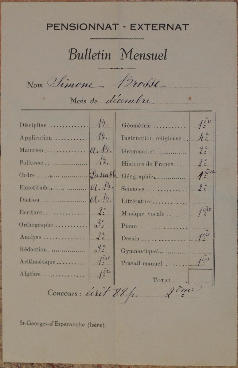 Interessante pagella di un bambino del collegio francese di St Georges d'Esperanche (Isere). Senza data ma della fine del XIX secolo. In buone condizioni, piegature. In 8. Dim. cm 21x13,5. Interesting school resuming of a child of the college of St Georges d'Esperanche (Isere). Not dated but of the end of XIX century. In good conditions, foldings.