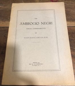VT- Opuscolo in memoria di Ambrogio Negri, avvocato padovano. Pagg. 25. una foto del Negri all'antiporta Bross. edit., mis. 245x170