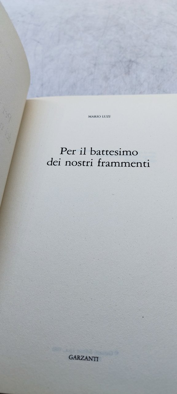 mario luzi per il battesimo dei nostri frammenti. , garzanti 1985 italiano, 210 °°
