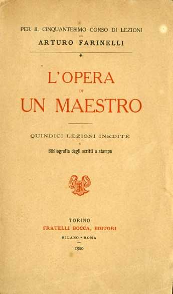 Per il cinquantesimo corso di lezioni di Arturo Farinelli: l'opera di un maestro: quindici lezioni inedite e bibliografia degli scritti a stampa.