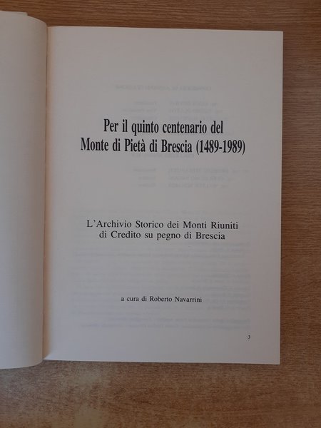 Per il quinto centenario del Monte di Pietà di Brescia (1489-1989)