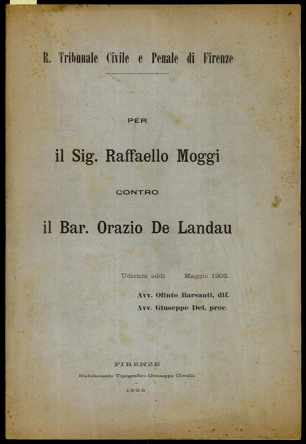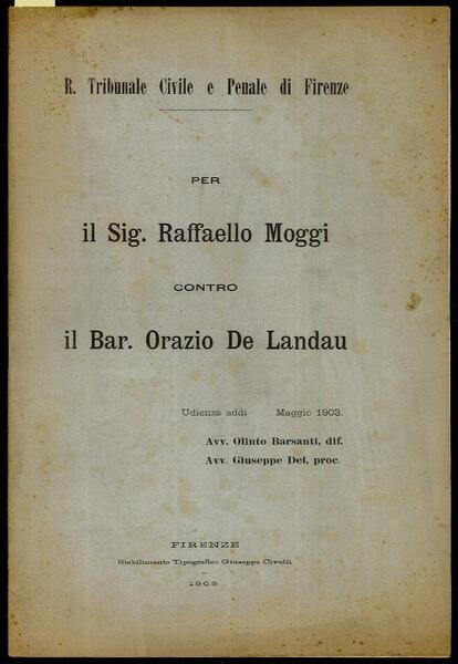 Per il Sig. Raffaello Moggi contro il Bar. Orazio De Landau