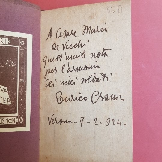 In-16°, pp. 59, brossura editoriale. Bella dedica autografa dell'autore a Maria De Vecchi Conte di Val Cismon. Ex-libris del medesimo.