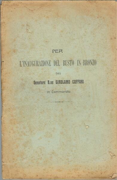PER L'INAUGURAZIONE DEL BUSTO IN BRONZO DEL SENATORE B.NE GIROLAMO COFFARI IN CAMMARATA