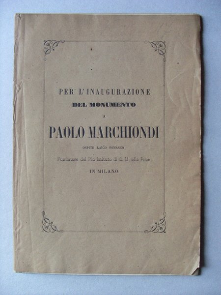 Per l'inaugurazione del Monumento a Paolo Marchiondi fondatore del Pio Istituto di S. M. alla Pace in Milano.