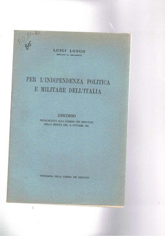 Per l'indipendenza politica e militare dell'Italia. Discorso alla camera del 16 ott. 1951.