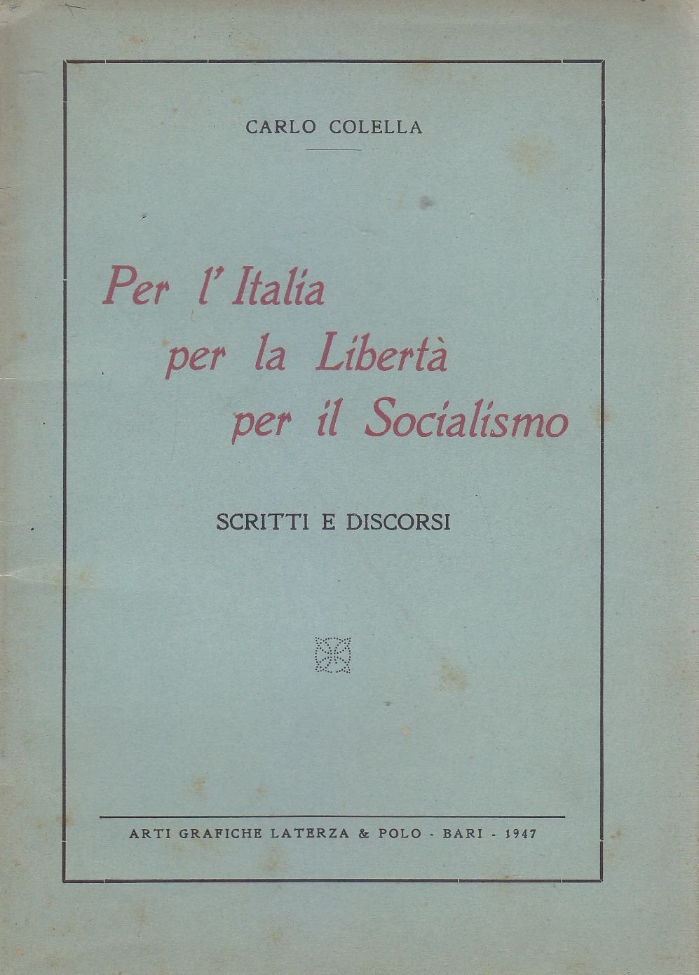 PER L'ITALIA PER LA LIBERTÀ PER IL SOCIALISMO SCRITTI E DISCORSI di Carlo Colella. Arti Grafiche Laterza e Polo 1947.