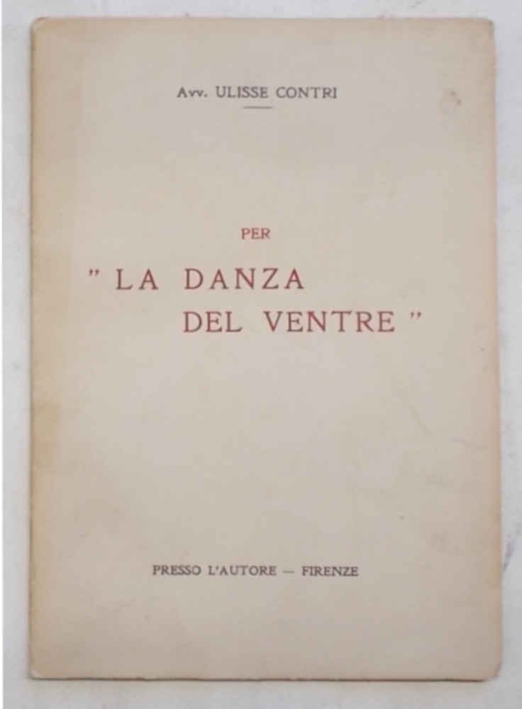 In 8° (cm. 19,5 x 13,5); pagg. 48; leggera cartonatura origin. VG. ** L'arringa dell'Autore e altri giudizi su altre sue precedenti opere. "Il libro 'La danza del ventre' di Angiolo Maria de Pini non appena apparve nelle vetrine dei libraj venne sequestrato. E l'autore, il pittore che aveva disegnato la copertina, i tipografi tutti furono messi sotto processo. Una vera ecatombe. L'accusa era la solita: di oltraggio al pudore."